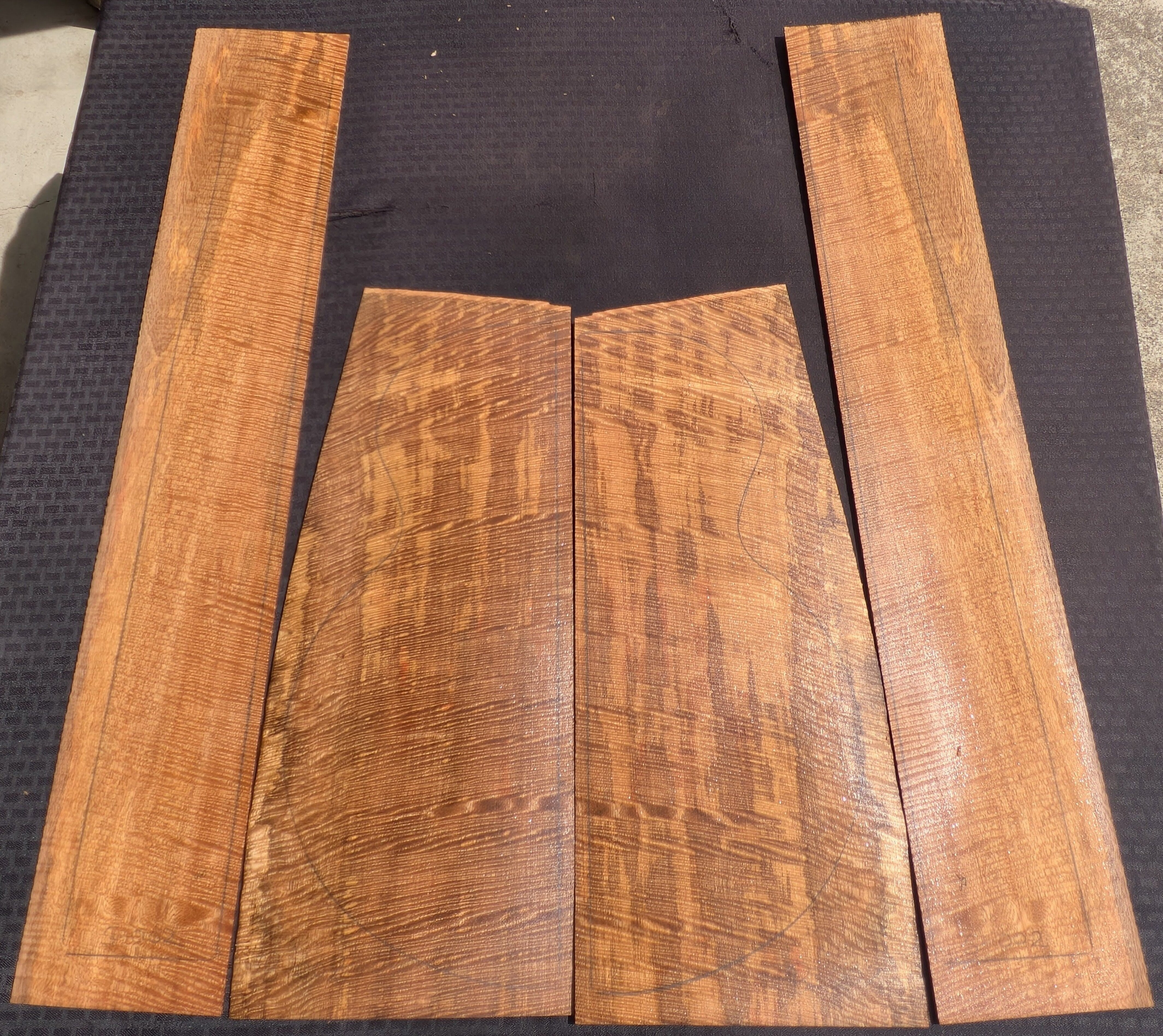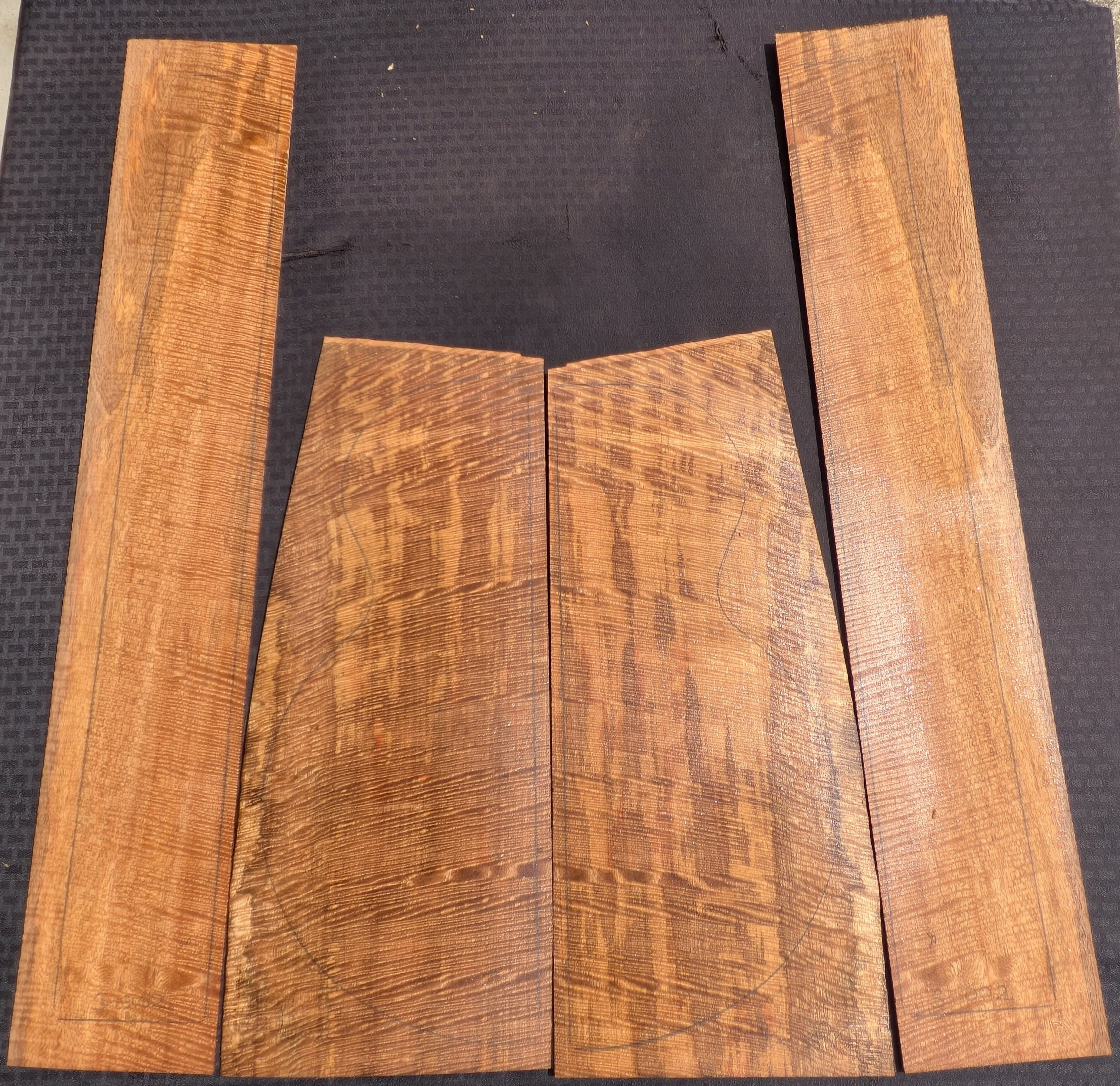 ハワイアンマンゴーカーリー アコースティックギター・JB-BS / 4ピース#002            Hawaiian Curly Mango Acoustic Guitar Back & Side Sets
