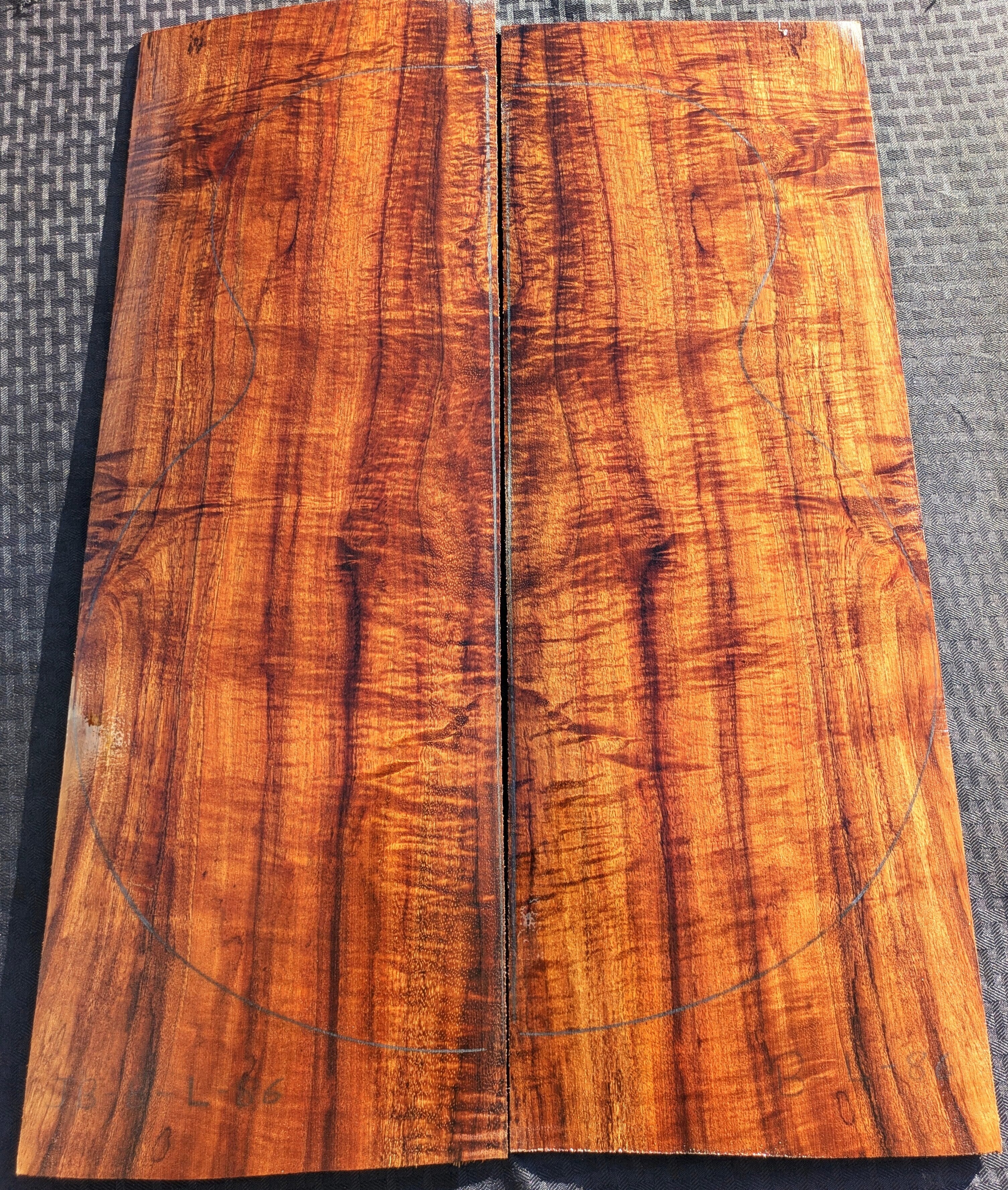 ハワイアンコア KOA-BS #086  Hawaiian Koa CURLY! Guitar Back & Side Set