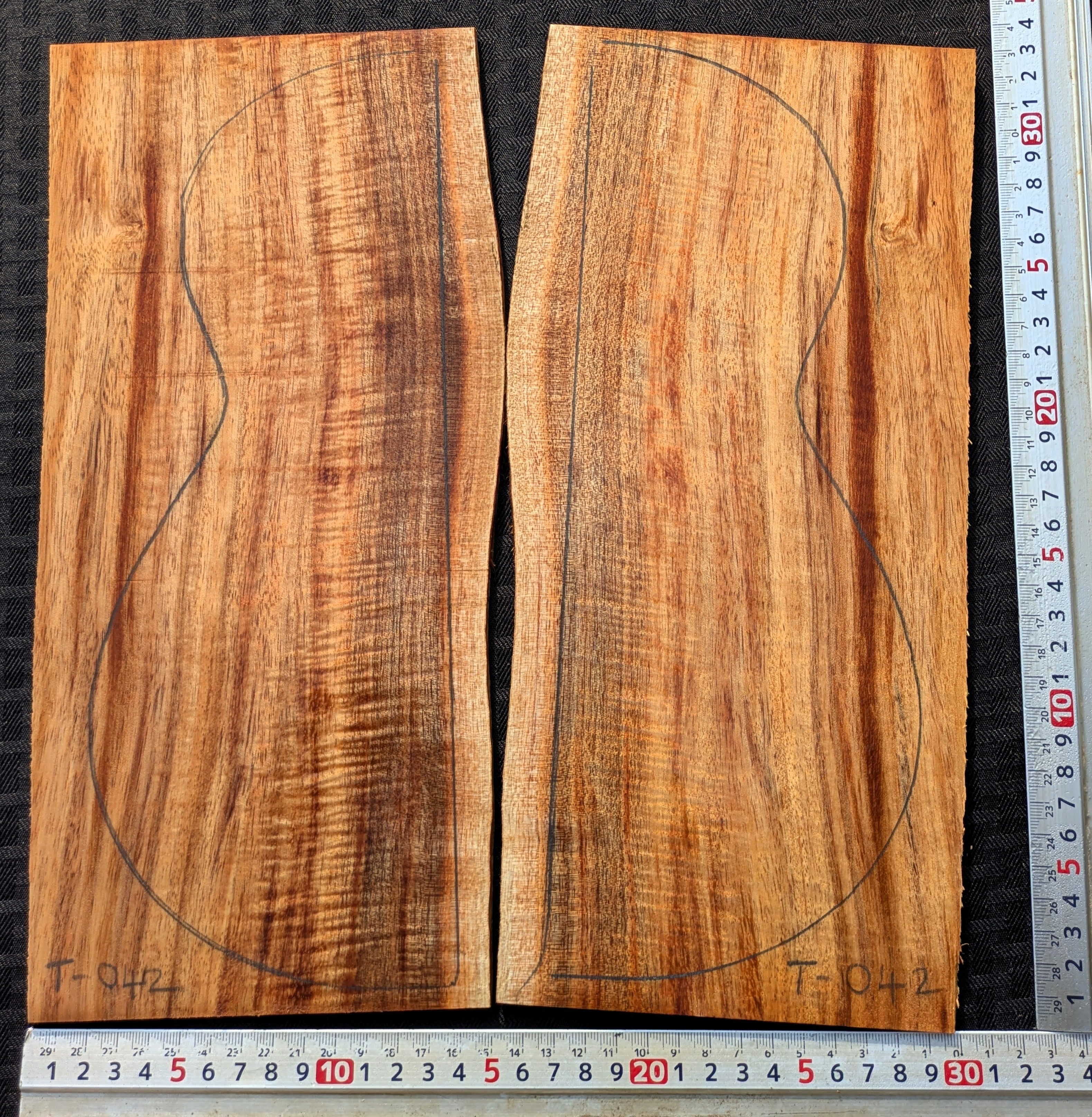 テナーウクレレ材 3A+ カーリー ハワイアンコア 表裏サイド6枚セット #TR-TBS-042 : Hawaiian Koa Curly 3A+ Tenor Ukulele Set