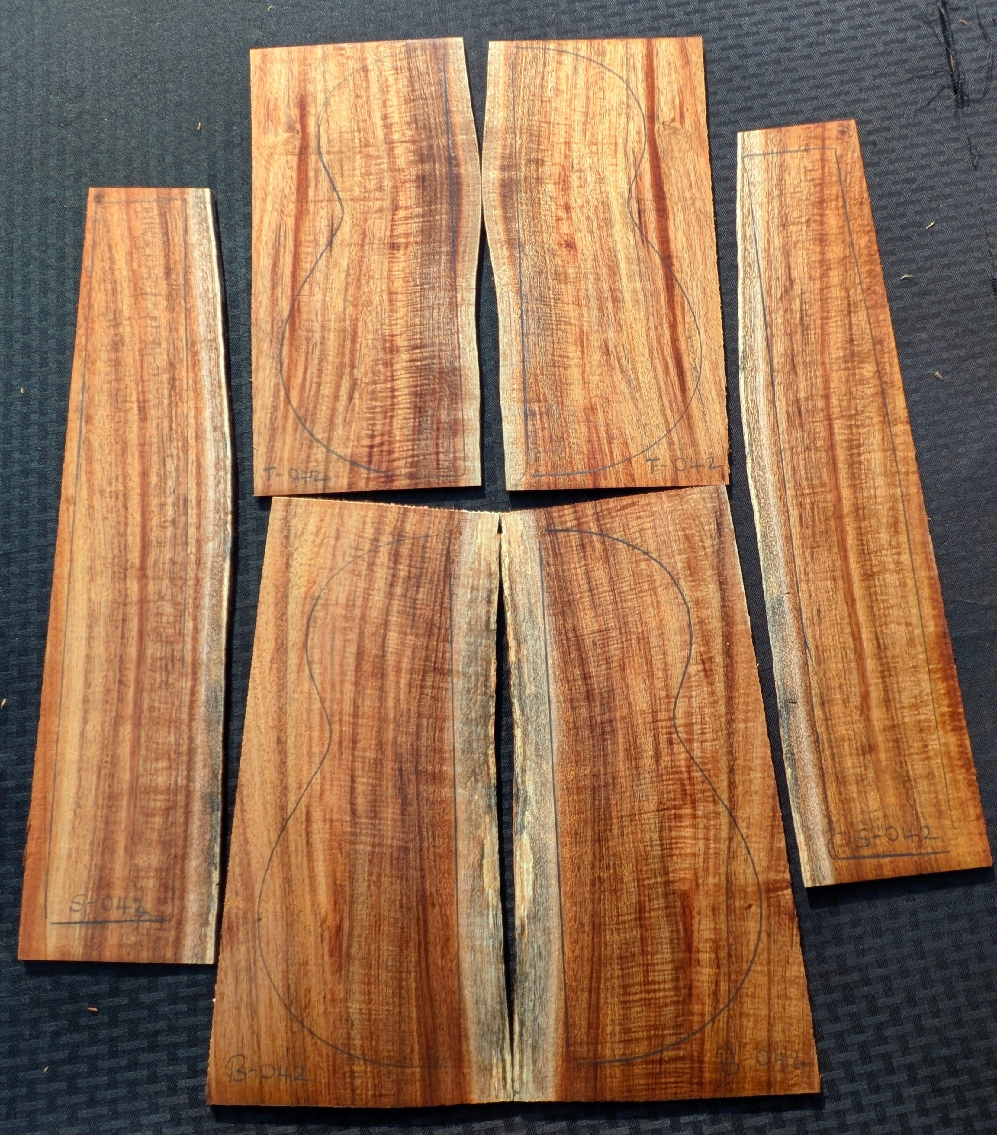 トップ・バック・サイドの6枚構成、すべてブックマッチ仕様。