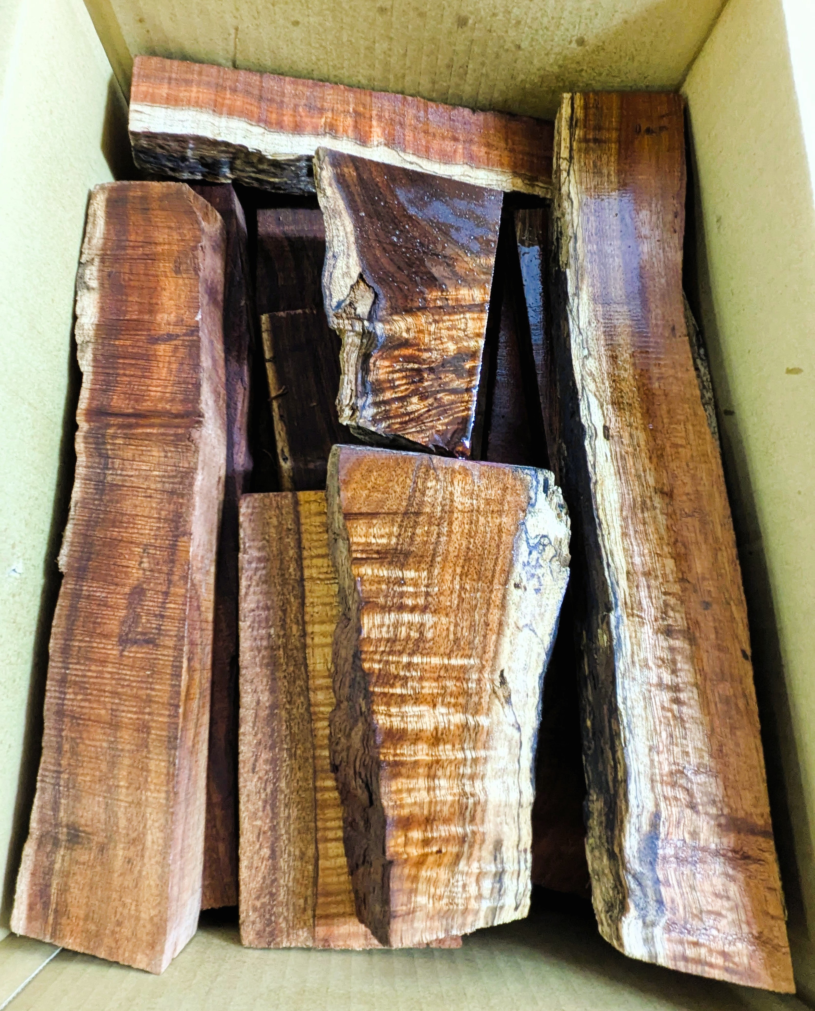 お楽しみボックス ハワイアンコア 端材 約7kg ミックスグレード 2A–5A #BLX7-001 : Hawaiian Koa Cutoff Box