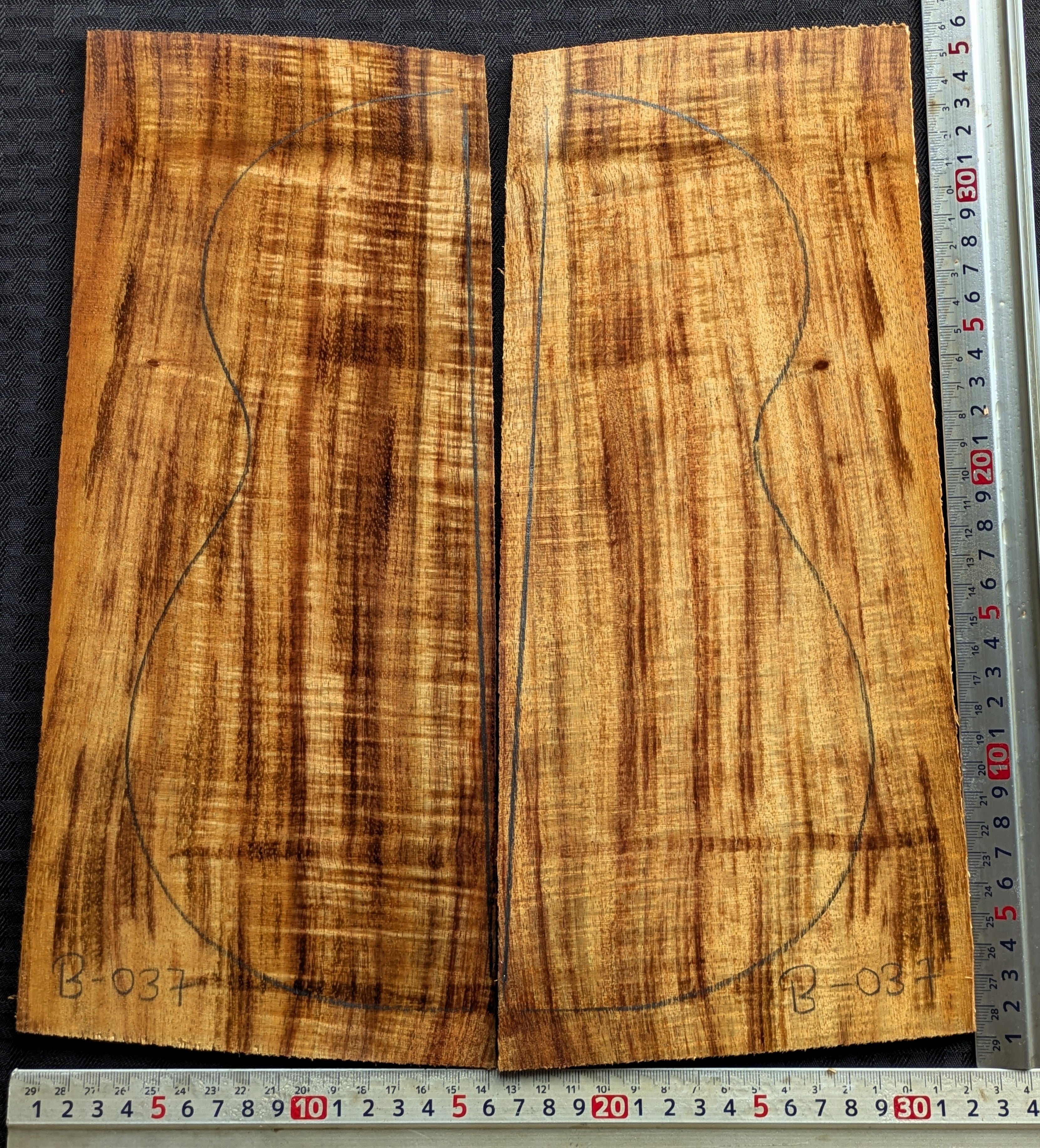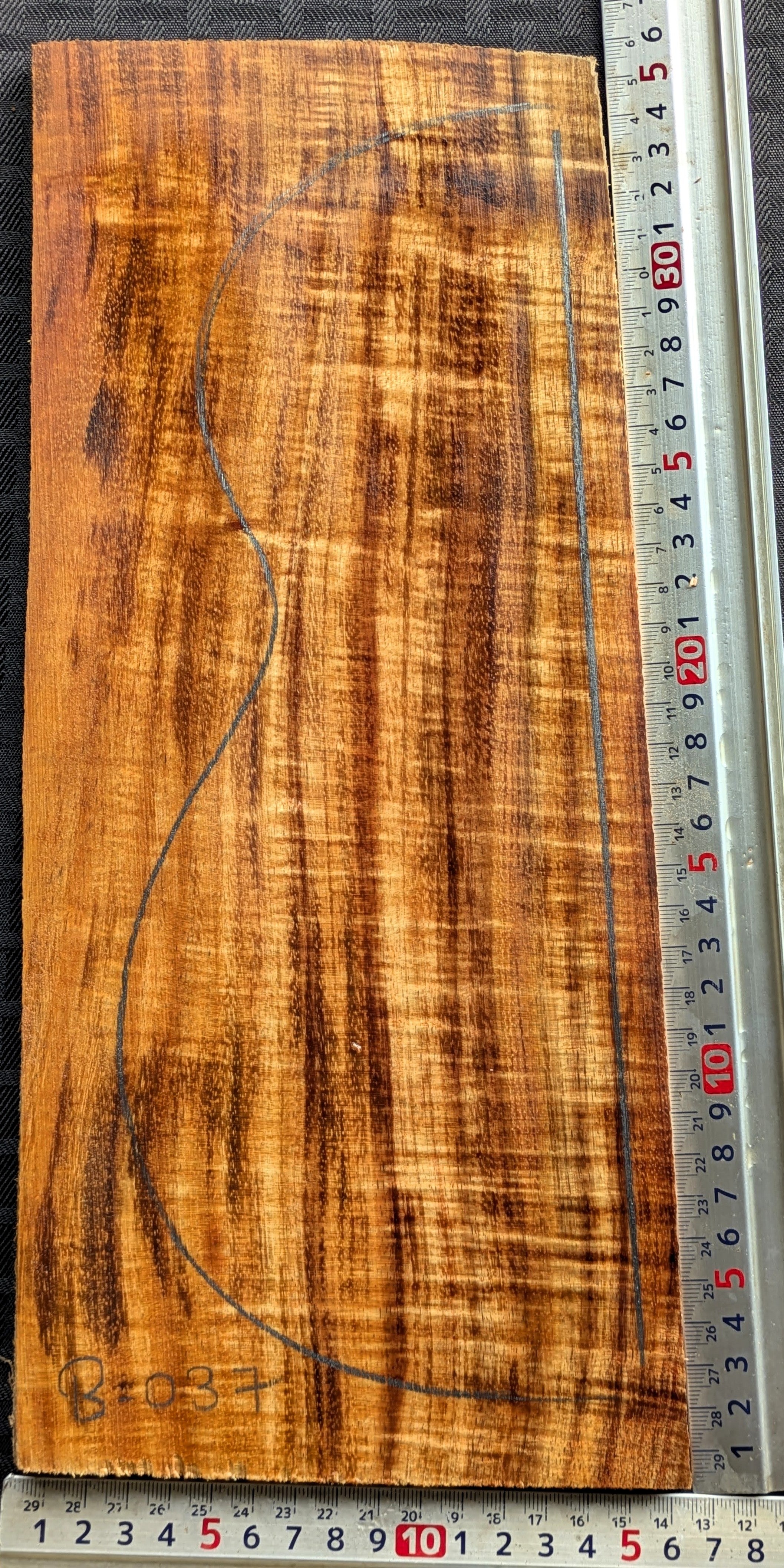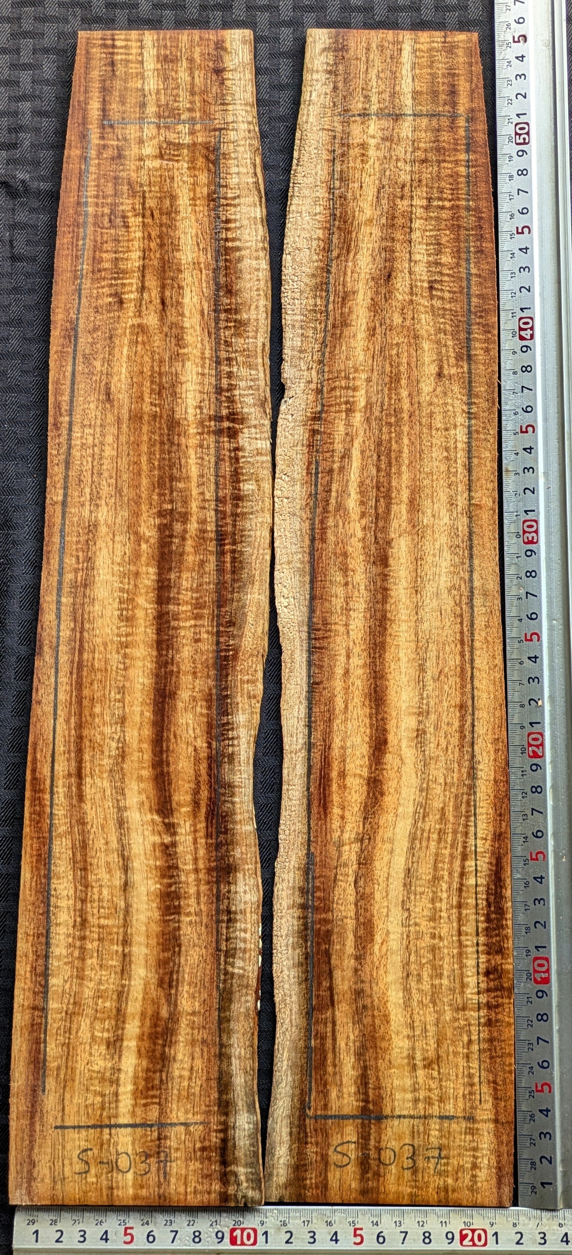 ハワイアンコア 3A+ カーリー ウクレレ材 #037 テナーサイズ : トップ・バック & サイド Hawaiian Koa Tenor Set