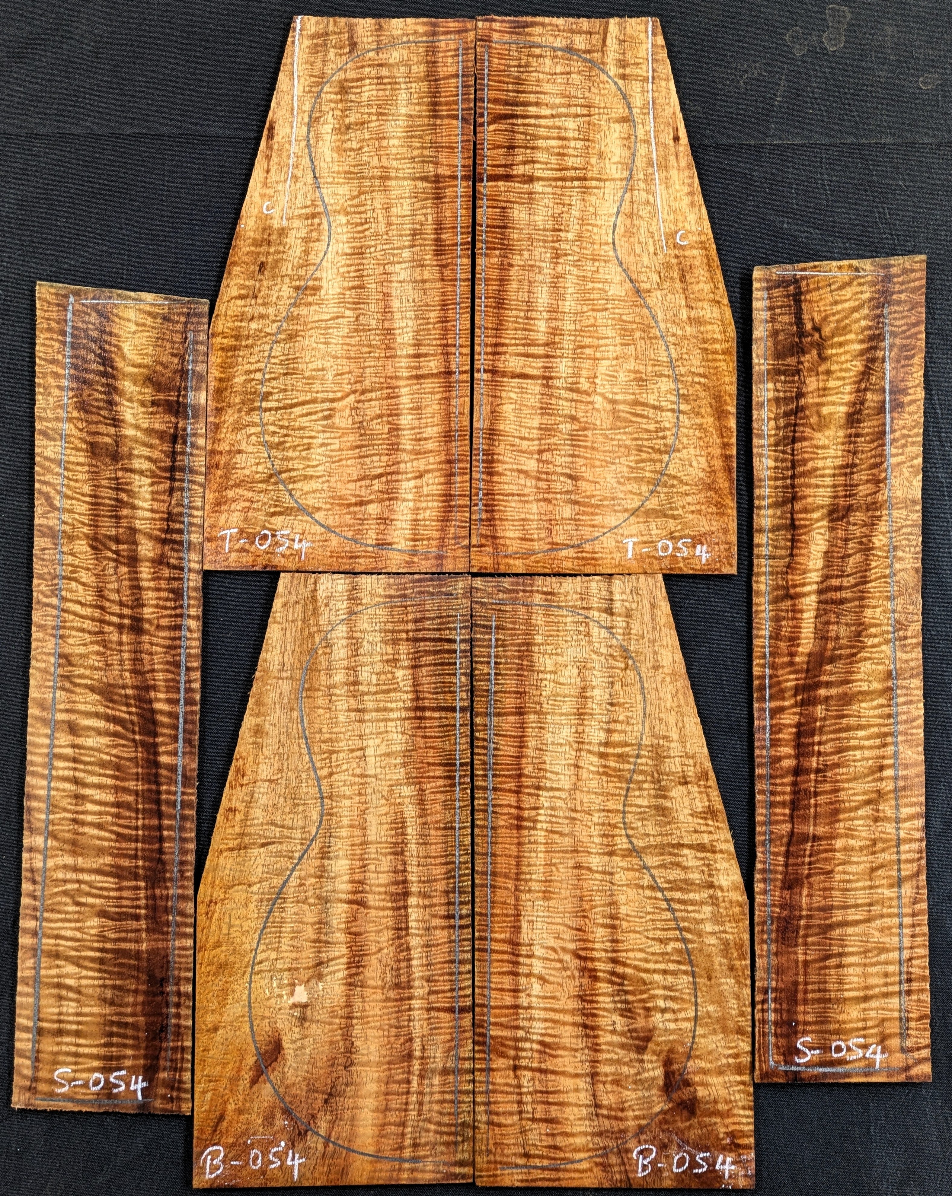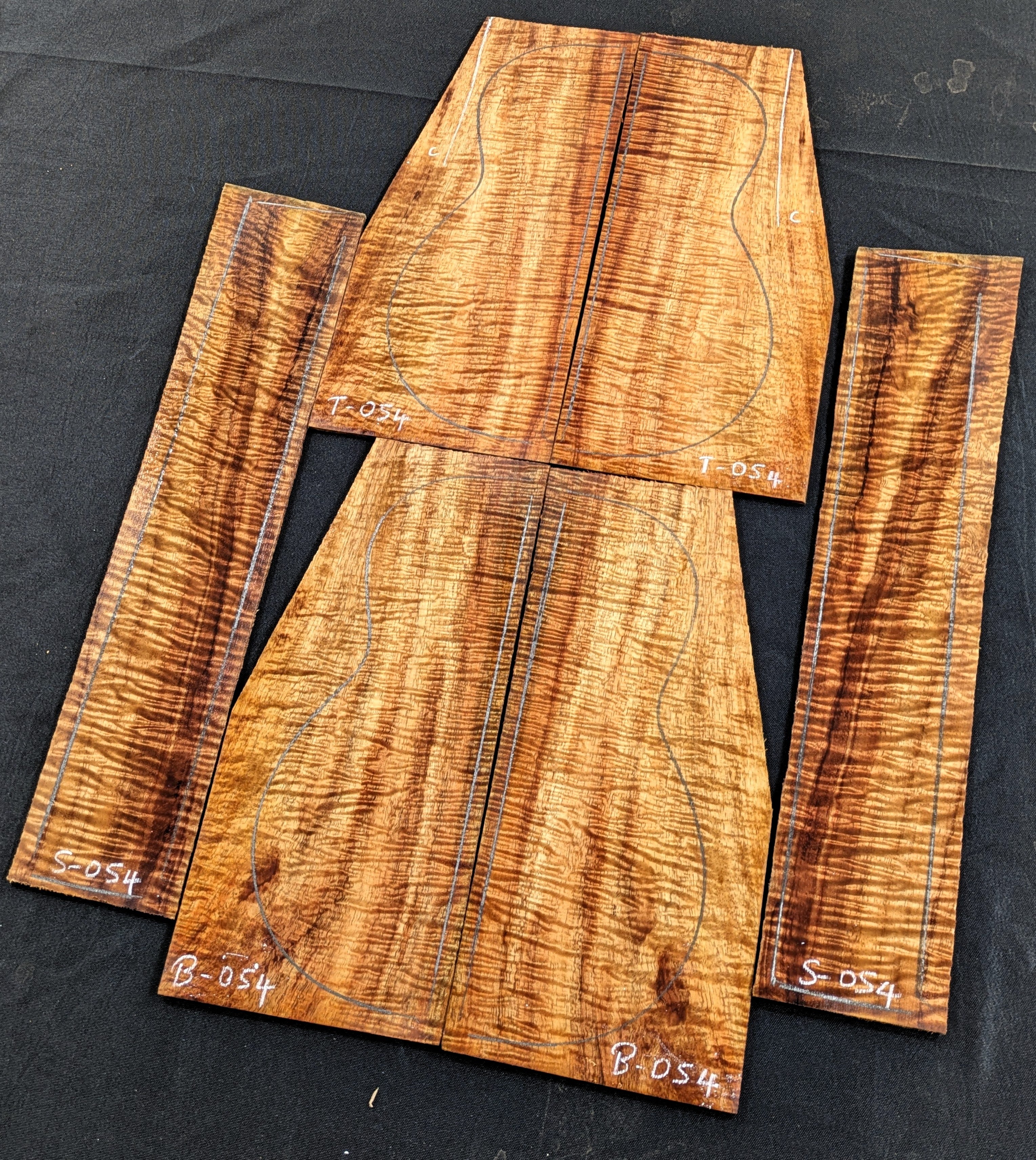 ハワイアンコア 5A+ カーリー ウクレレ #054 ソプラノサイズ : トップ・バック & サイド Hawaiian Koa Soprano Set