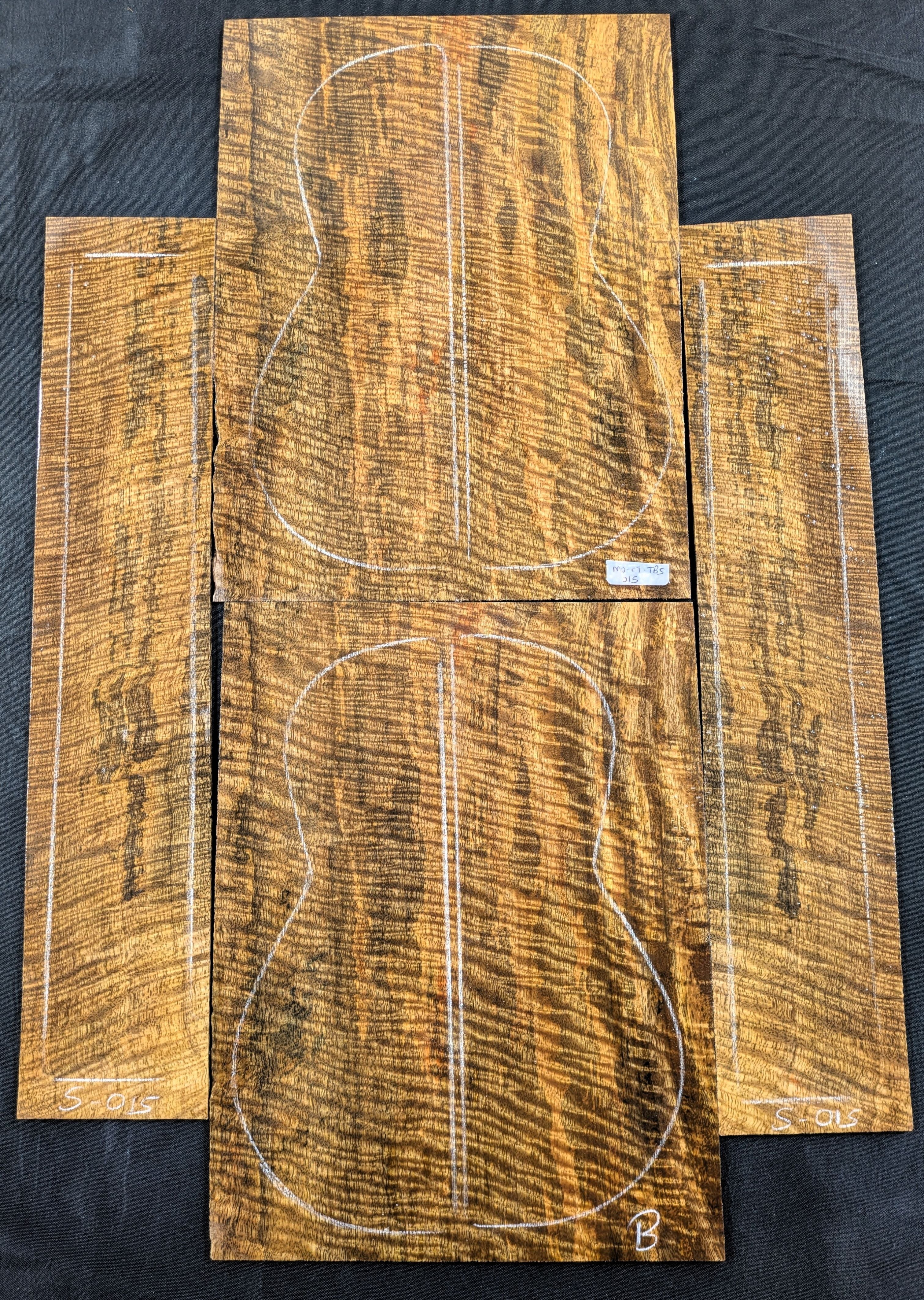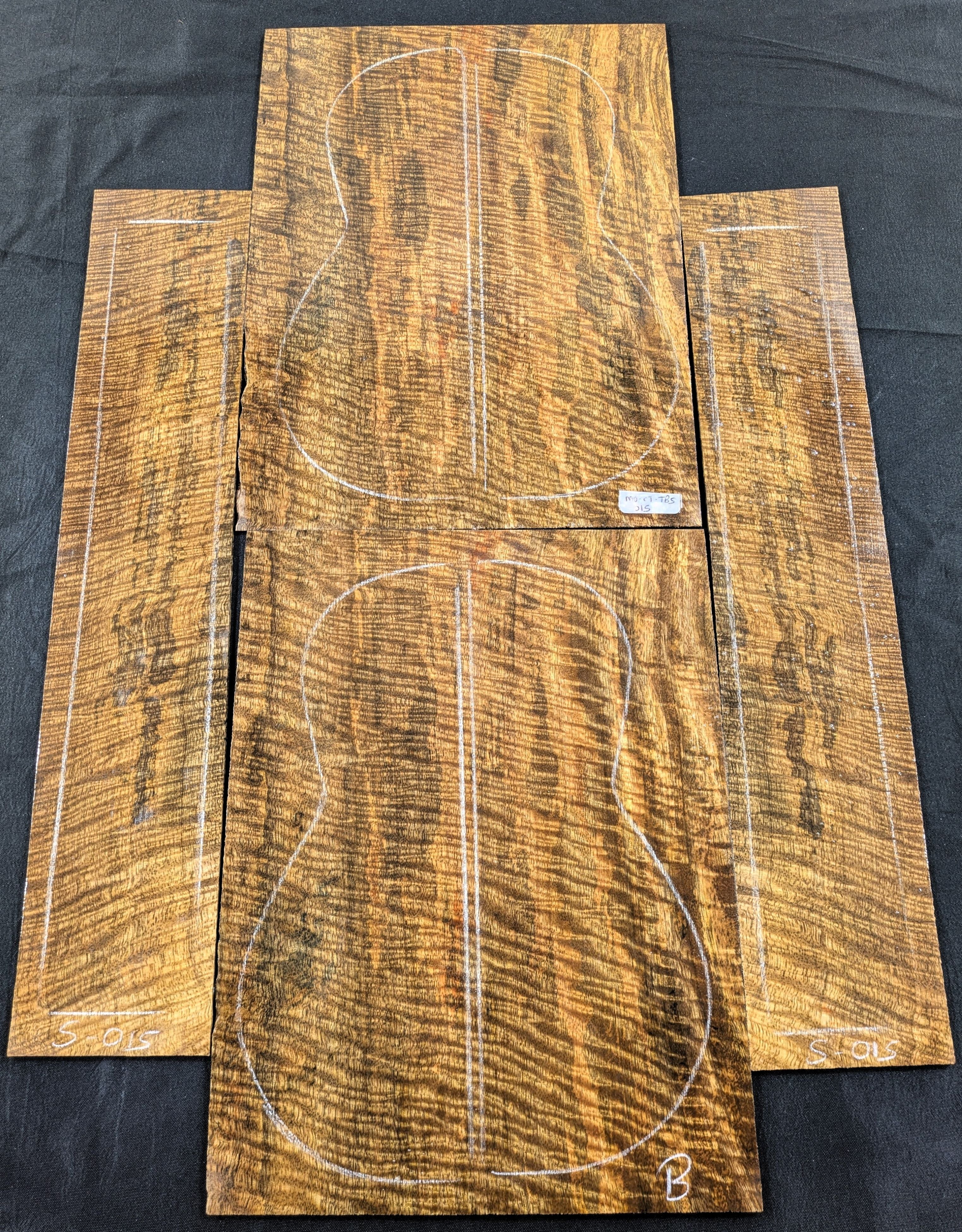 ハワイアンマンゴー 5A+ マスターカーリー コンサートウクレレ材 表裏サイド4枚セット #MO-CT-TBS-015 : Hawaiian Mango 5A+ Master Curly Concert Ukulele Set