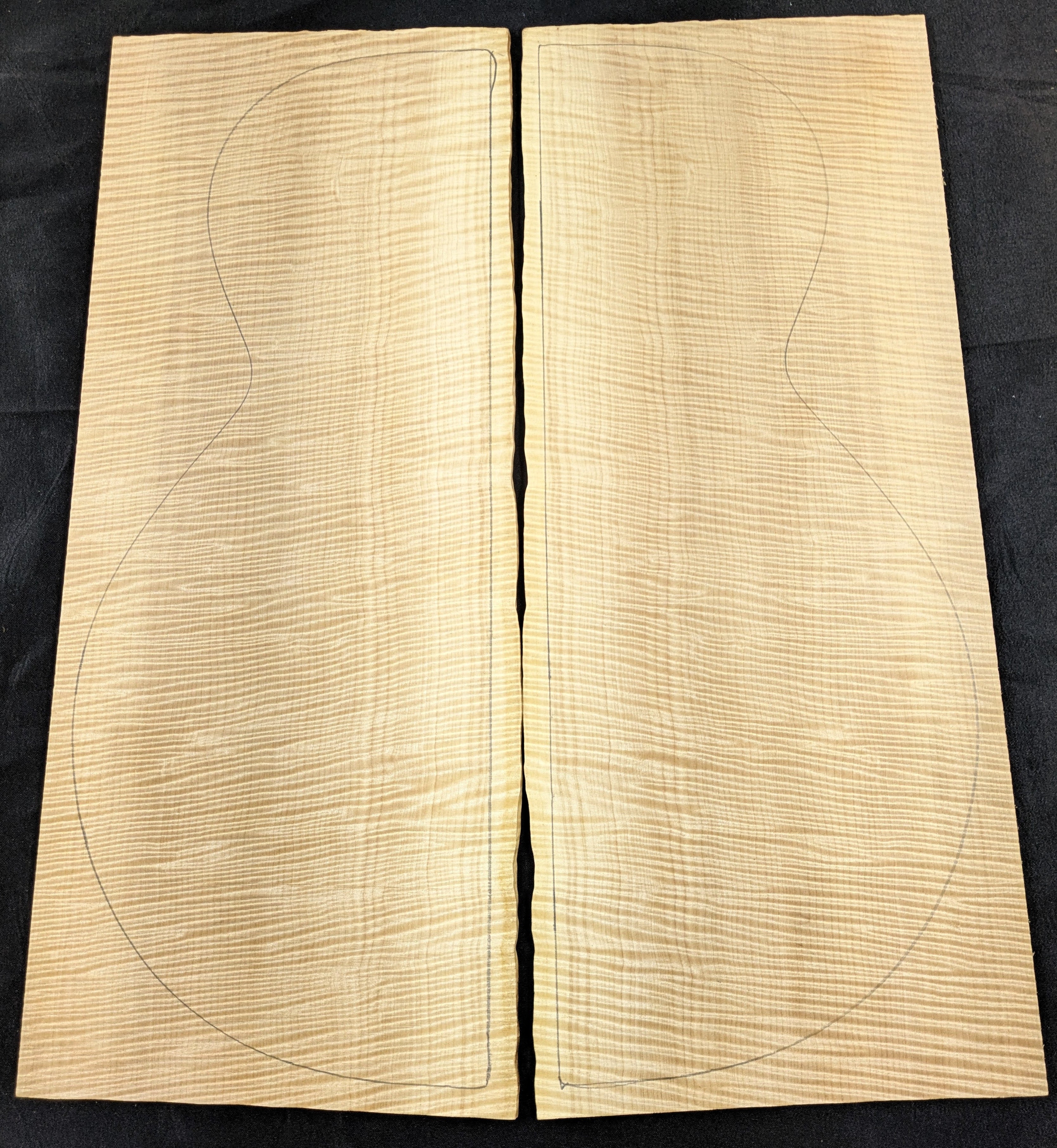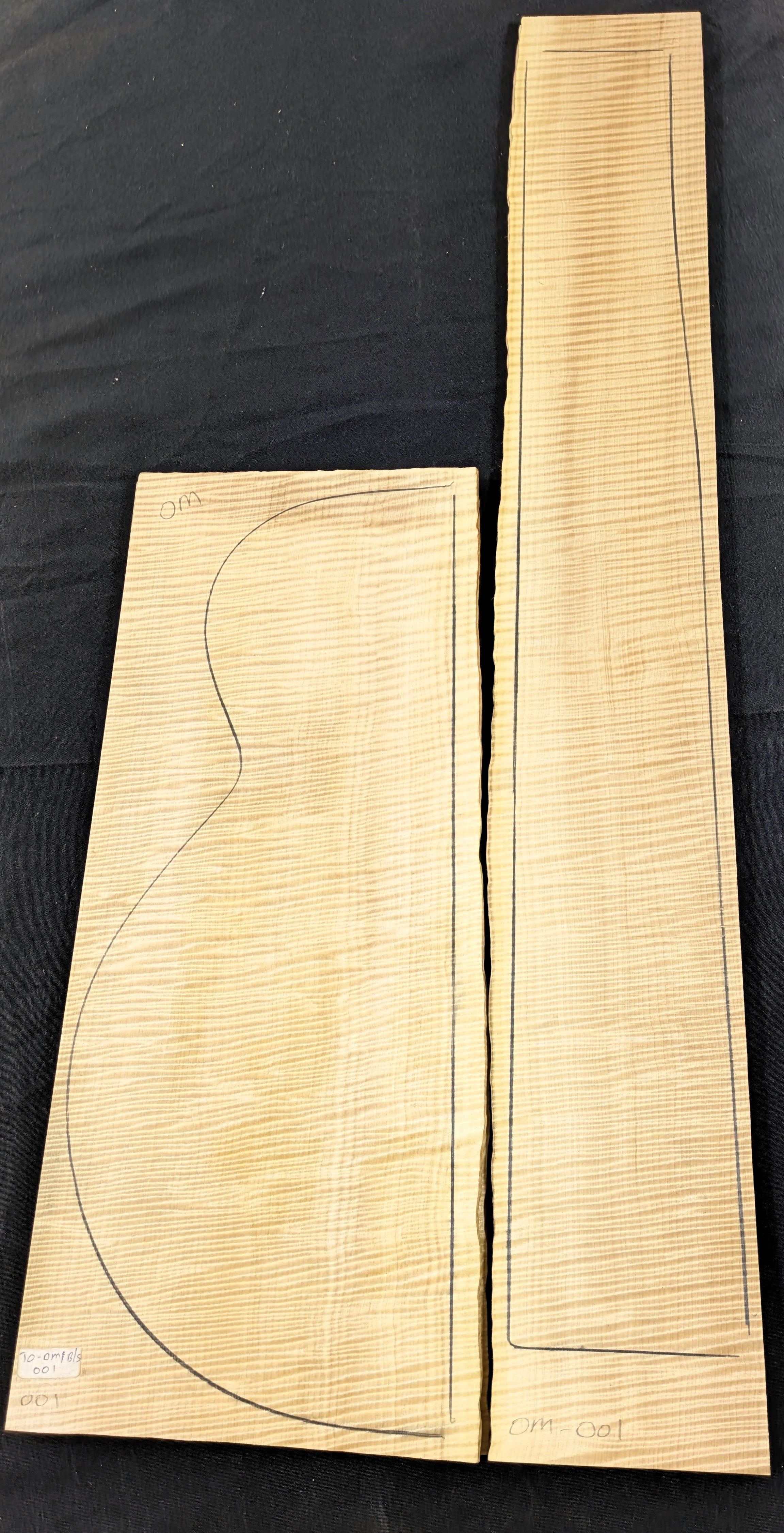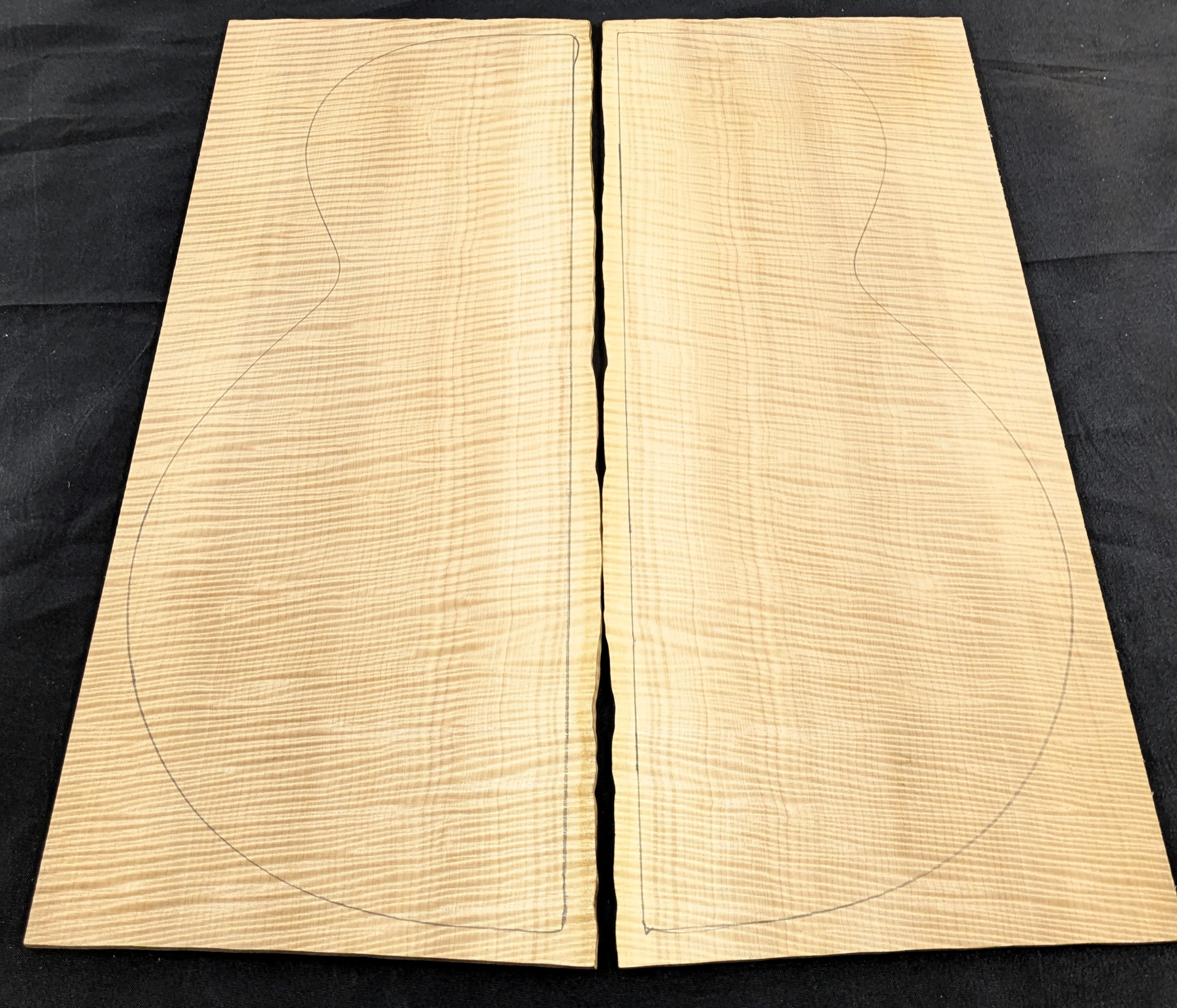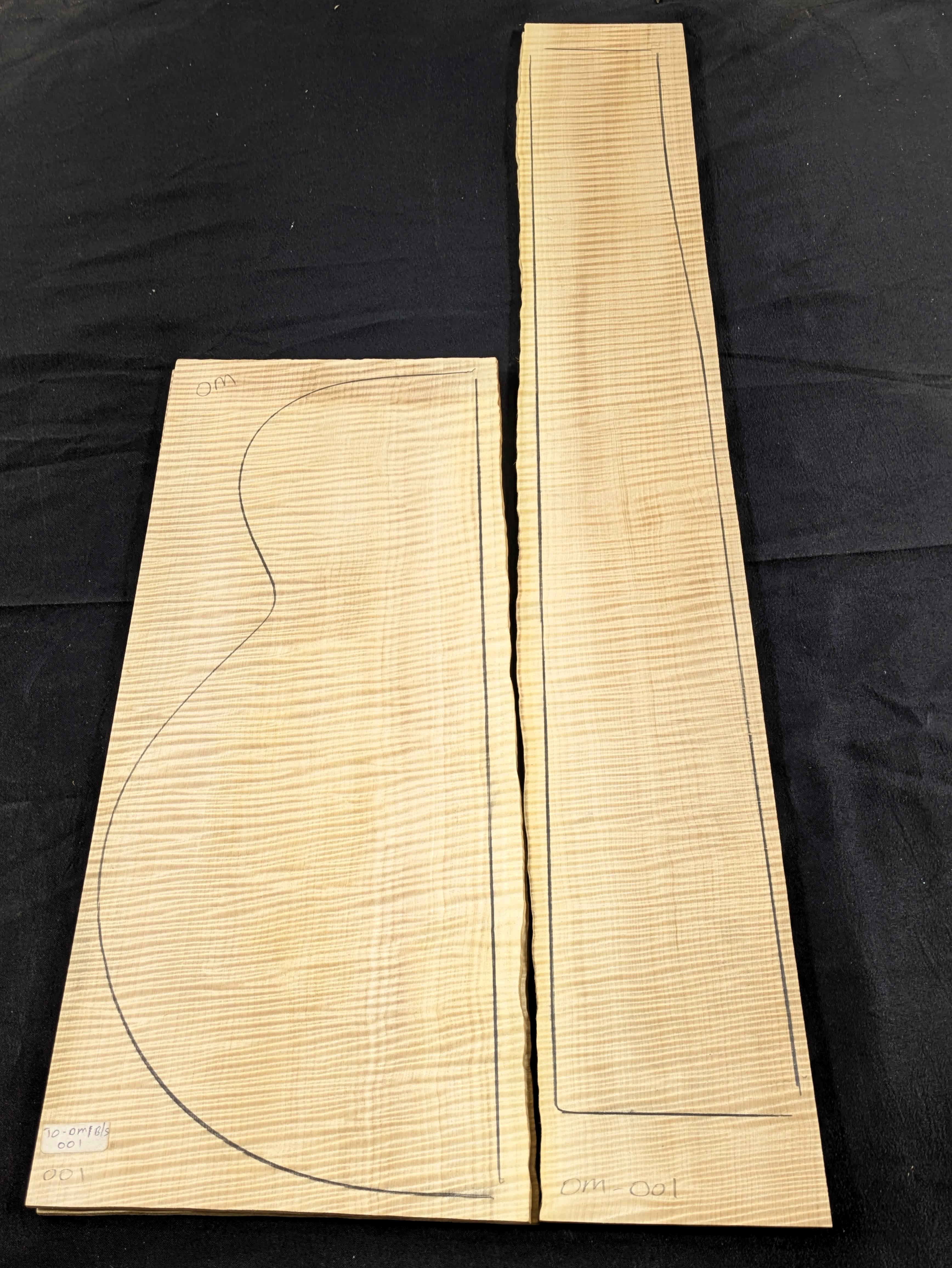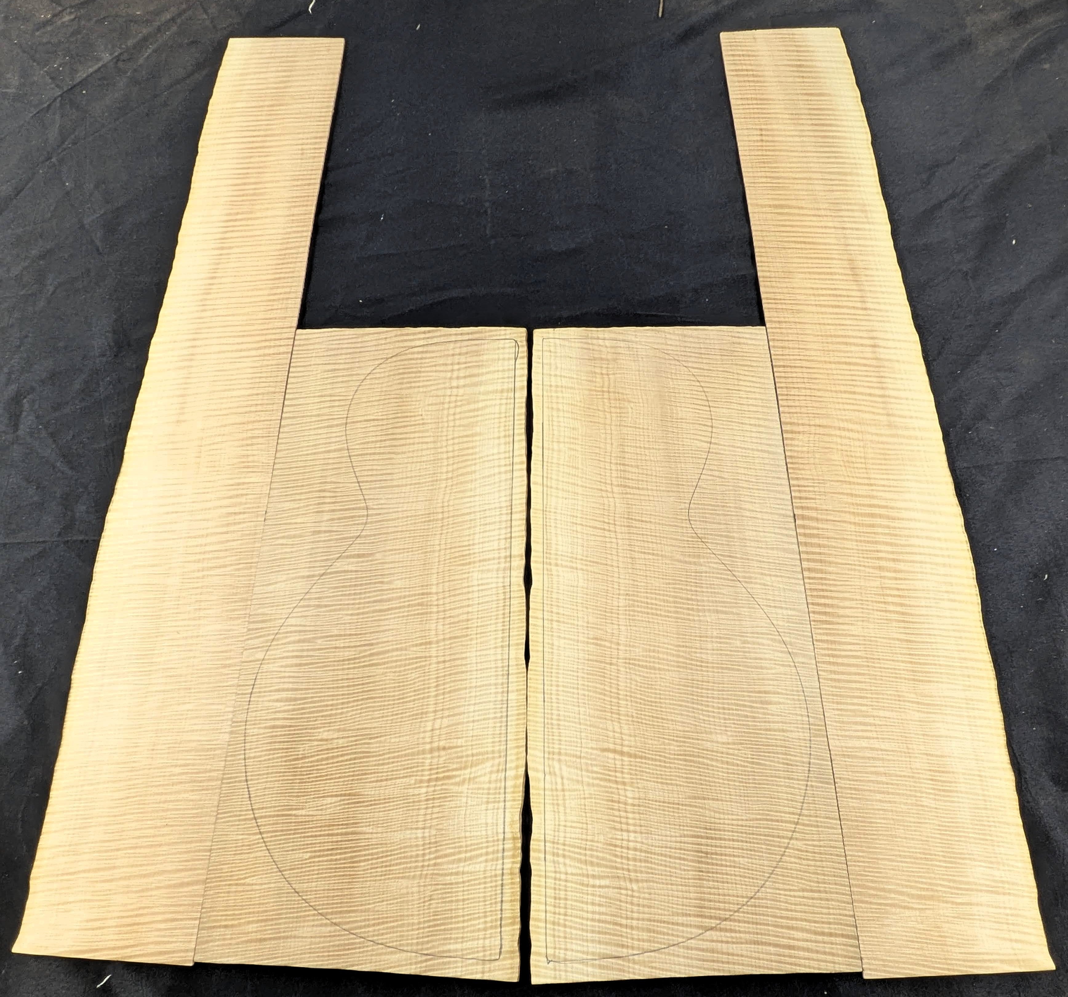 岐阜県産 栃 5A+ マスターカーリー アコースティックギター材 Back & Side 4枚セット #TO-OM-BS-001 : Japanese Horse Chestnut 5A+ Acoustic Guitar Back & Side Set